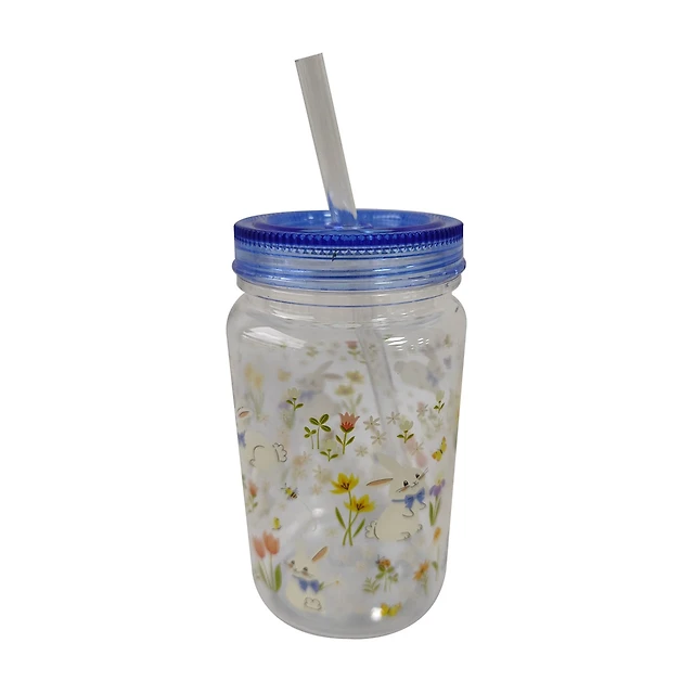 Easter Bunny Bow Drinking Mug with Straw, 14 oz