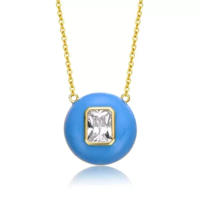 Lab Created 14K Gold Plated with Clear Cubic Zirconia & Blue Enamel Small Round Pendant Necklace for Kids