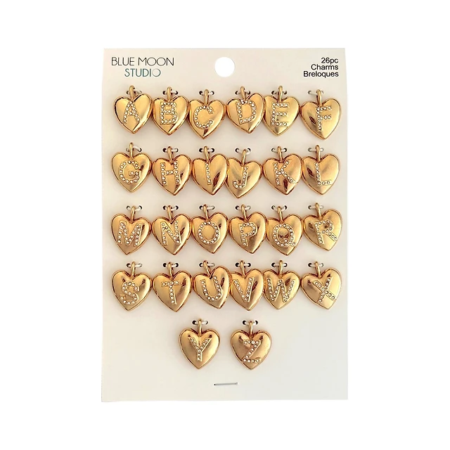 Blue Moon Studio™ Gold Mirror-Plated Heart Alphabet Charm Set
