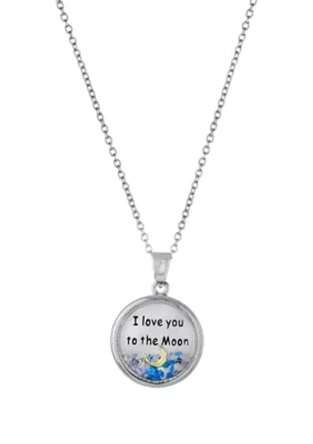 Boxed Silver Plated 18" 'I Love you to the Moon and Back' Blue Dancing Crystals Pendant Necklace