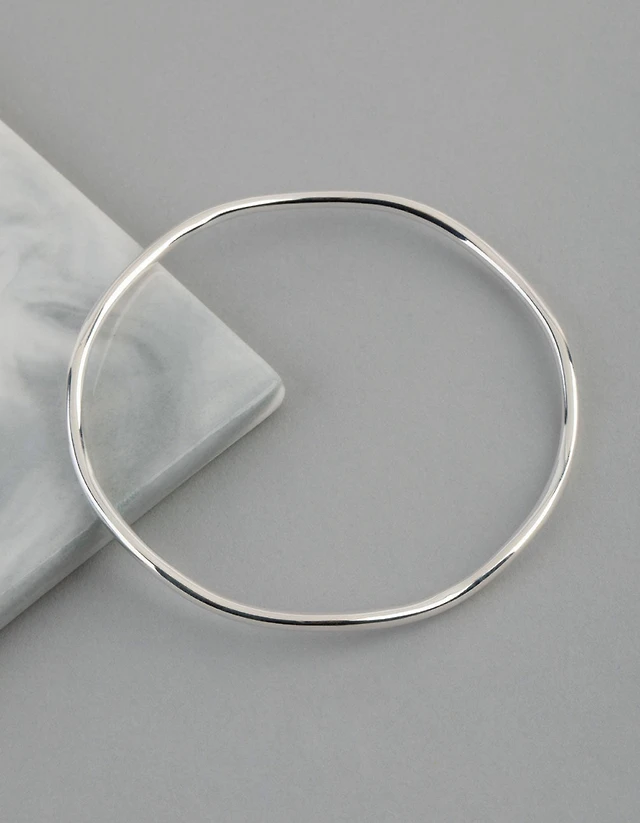 Silver Plated Brass Statement Wavy Bangle