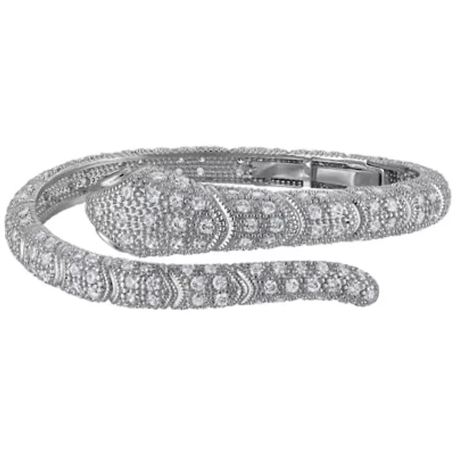 Lab Created Silver Plated Black CZ Bangle