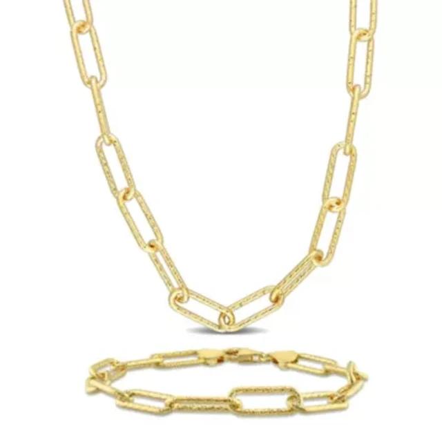 2-Pc Set of Paper Clip Link Charm Necklace & Bracelet in Yellow Plated Sterling Silver