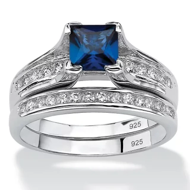 Lab Created 1.45 TCW Blue Sapphire CZ Platinum-plated Sterling Silver 2-Piece Bridal Set