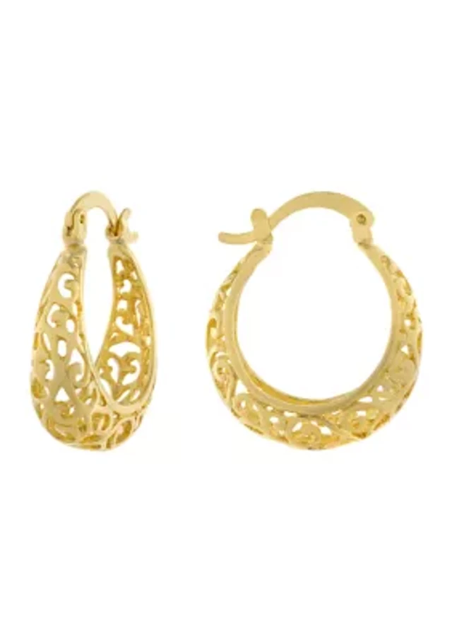 Diamond Accent Wide Hinged Hoop Earrings in 18k Yellow Gold and Rhodium Plated Sterling Silver