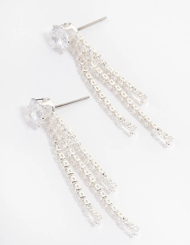 Silver Plated Cubic Zirconia Trio Drop Marquise Earrings
