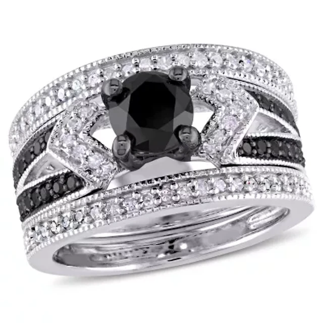 1.54 ct. t.w. Black and White Diamond Split Shank Bridal Ring Set Sterling Silver with Rhodium Plated