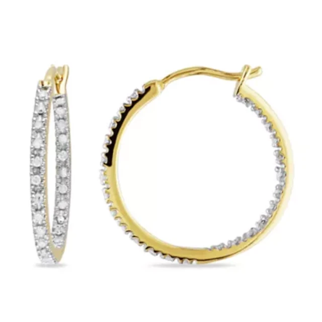 Gold Plated Sterling Silver Diagonal Hoop Earrings 12mm
