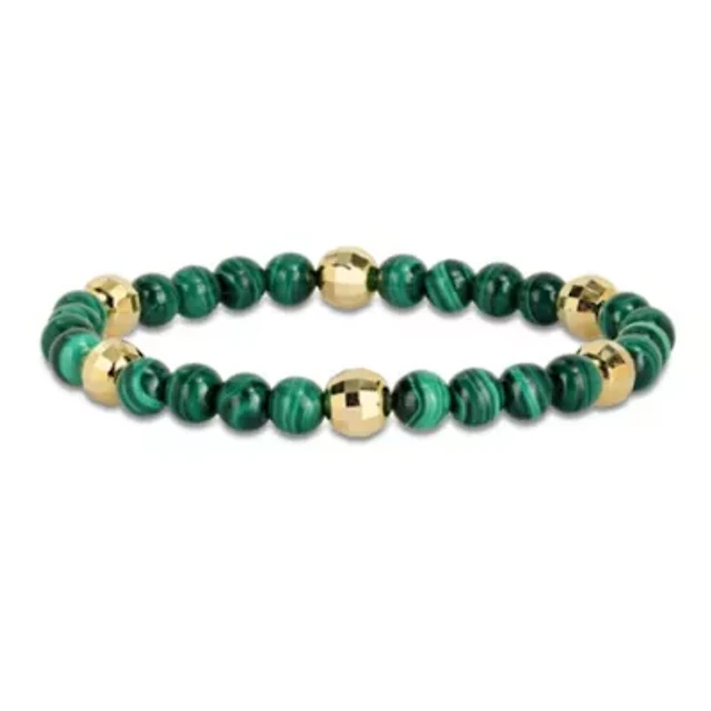 Malachite Men's Bracelet in Yellow Plated Sterling Silver