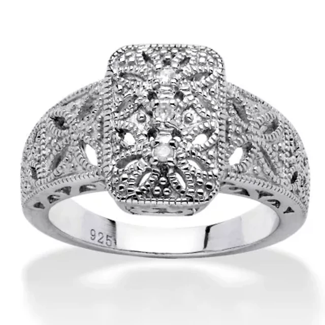 Diamond Accent Platinum-plated Sterling Silver Filigree Ring