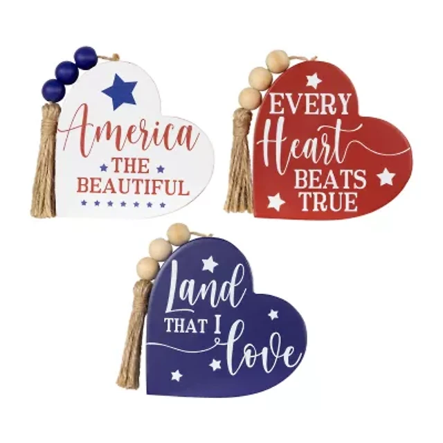 Northlight 3.75in Set Of 3 Hearts With Beaded Tassels Wooden 3-pc. Tabletop Decor