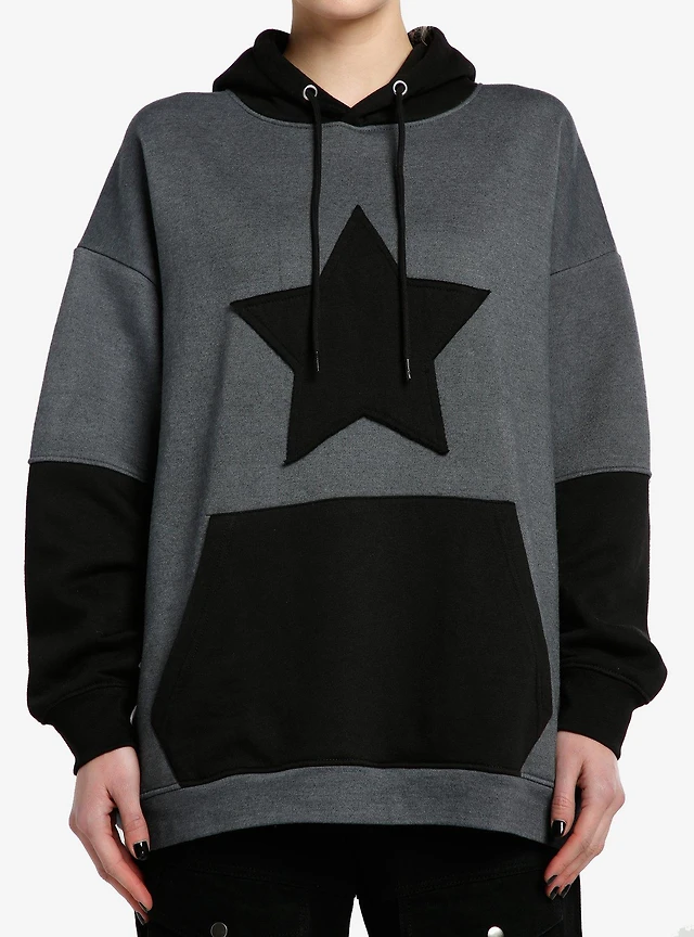 Black & Grey Star Color-Block Girls Oversized Hoodie