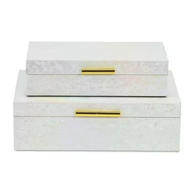 Cheungs White Seascale Pattern Iridescent Box Set With Gold Hardware White Jewelry Organizer