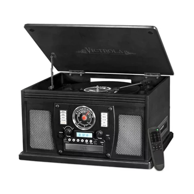 Victrola VTA-600B Wooden 8-in-1 Nostalgic Record Player with Bluetooth and USB Encoding