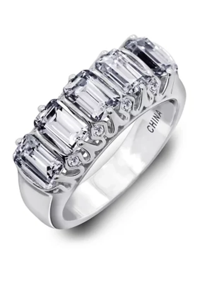 Cubic Zirconia Frame Three Piece Bridal Set in Sterling Silver and 14K Rose Gold Plate - Size 7