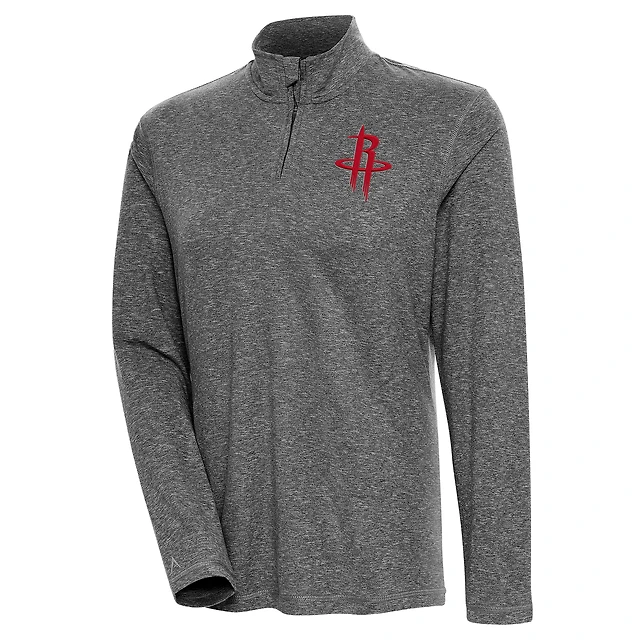 Women's Antigua Heather Black Houston Rockets Confront Quarter-Zip Pullover Top