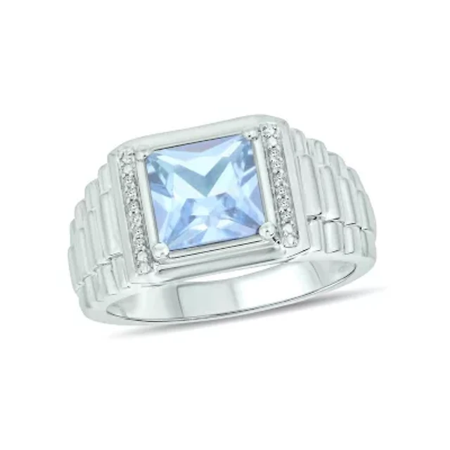 Lab Created Diamond Accent and 3.0 ct. t.w. Princess Cut Aquamarine Men's Ring Sterling Silver