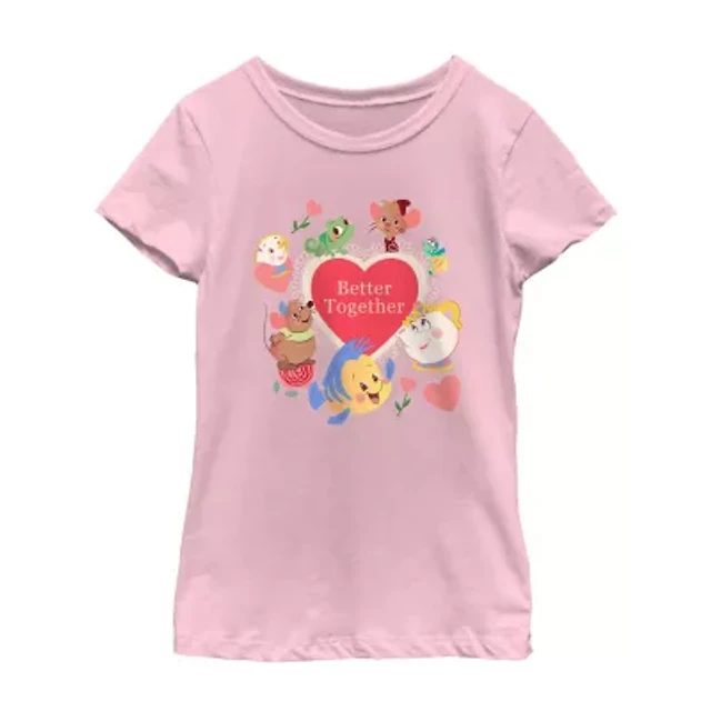 Disney Collection Little & Big Kid Girls Crew Neck Short Sleeve Regular Fit Belle Princess Graphic T-Shirt