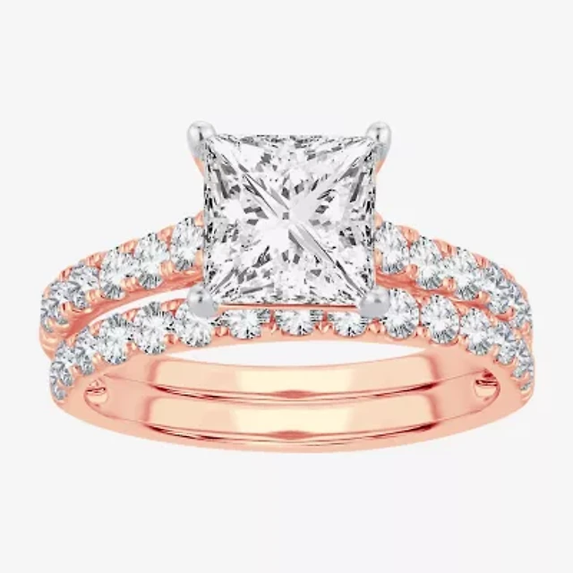(H-I / SI1-SI2) Signature By Modern Bride Womens 2 CT.TW Lab Grown White Diamond 14K Gold Side Stone Bridal Set