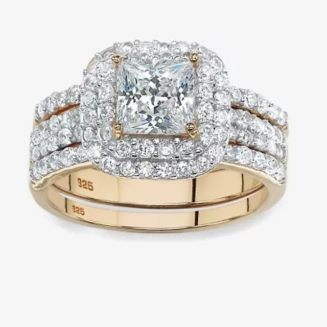 Diamonart Womens Cubic Zirconia 14K Gold Over Silver 3-Stone Bridal Set