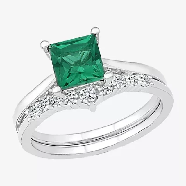Signature By Modern Bride (G / Si1-Si2) Womens 2 CT. T.W. Lab Grown White Diamond 10K Gold Side Stone Halo Bridal Set