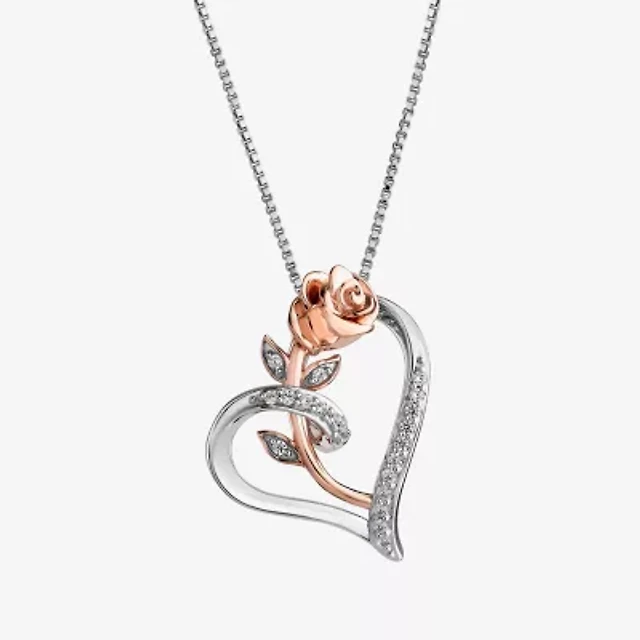 Enchanted Disney Fine Jewelry Womens 1/10 CT. T.W. Natural White Diamond Sterling Silver Flower 18 Inch Pendant Necklace