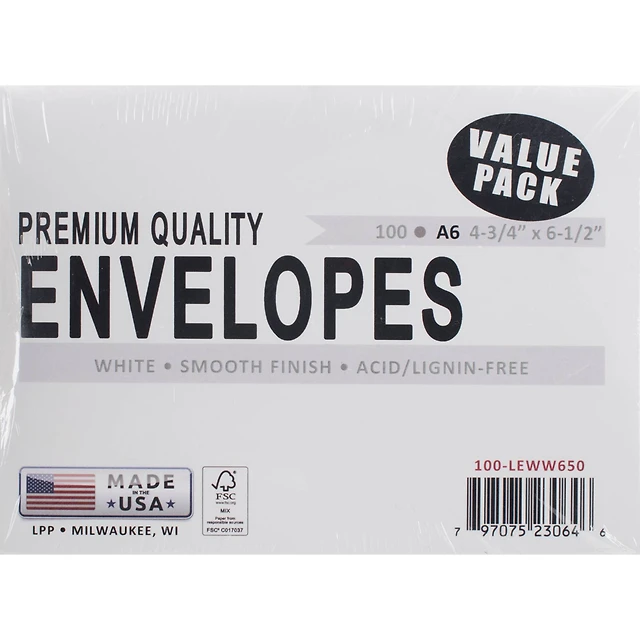 Leader Paper Products White A6 Envelopes, 100ct.