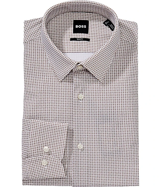 Men's Slim Fit Micro Print Performance Stretch Dress Shirt