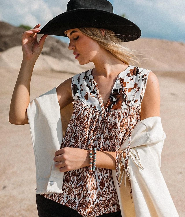 Sadie & Sage Floral Print Crochet Lace Strap Cropped Tank Top