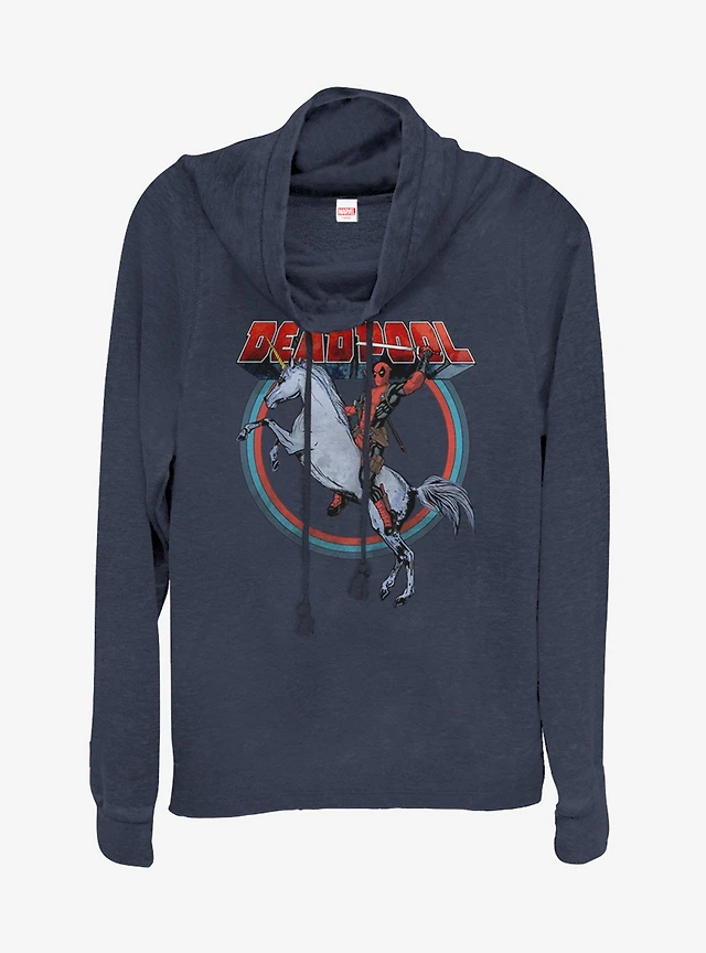 Marvel Deadpool Deadpool On Unicorn Cowlneck Long-Sleeve Girls Top