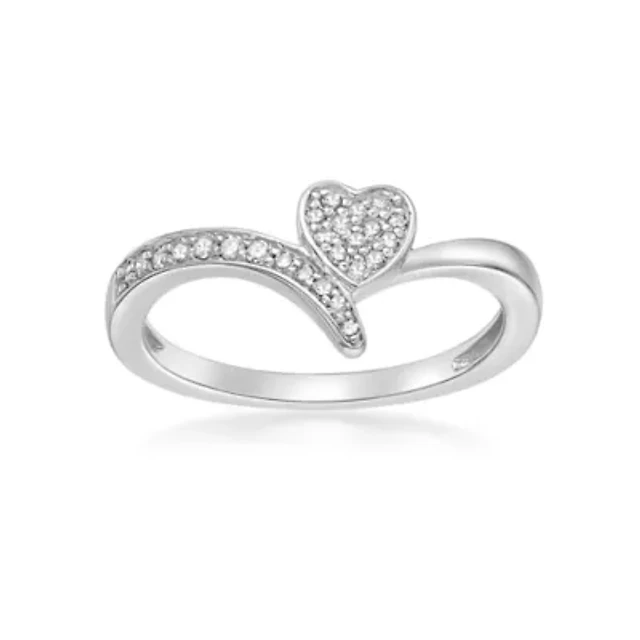 Promise My Love Womens 1/6 CT. T.W. Natural White Diamond Sterling Silver Heart Promise Ring