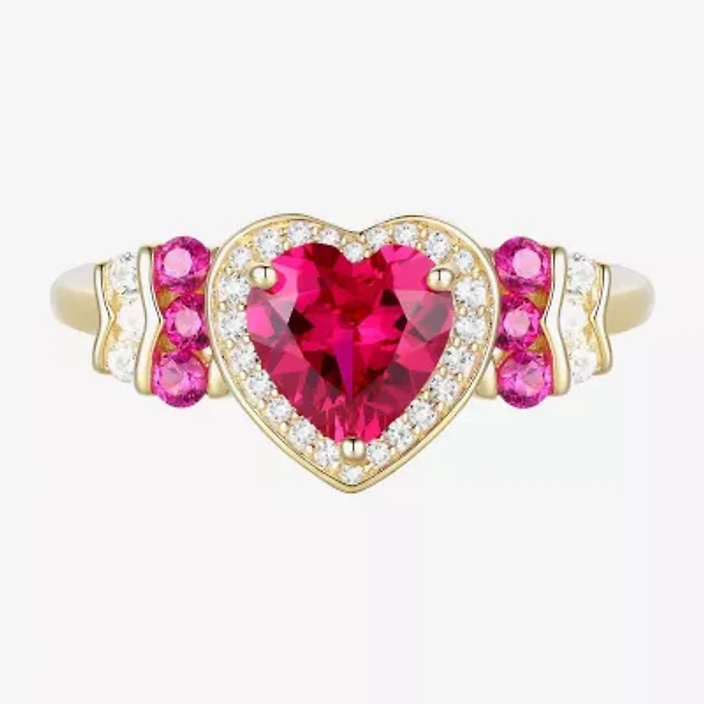 Sparkle Allure Womens Red Cubic Zirconia Pure Silver Over Brass Heart Halo Engagement Ring