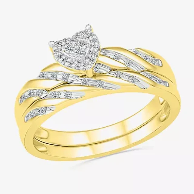Silver 1/3 Cttw Diamond Engagement Ring Set