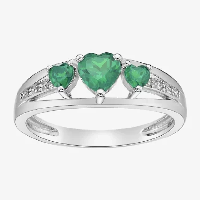 Womens Diamond Accent Lab Created Red Ruby Sterling Silver 3-Stone Side Stone Cocktail Ring