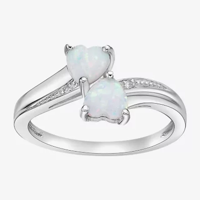 Effy Final Call Womens Diamond Accent Genuine White Opal 14K White Gold Halo Cocktail Ring