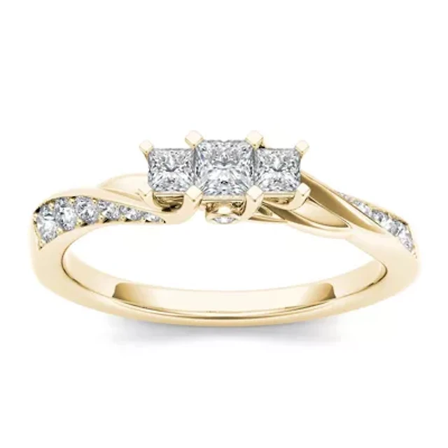1/5 CT.T.W. Natural Diamond 10K Yellow Gold 3-Stone Engagement Ring