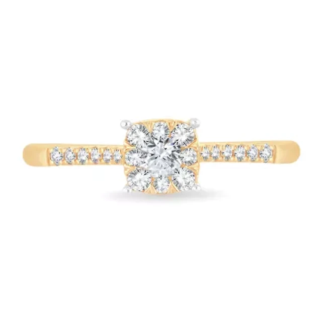1/5 CT.T.W. Natural Diamond 10K Yellow Gold Cluster Engagement Ring