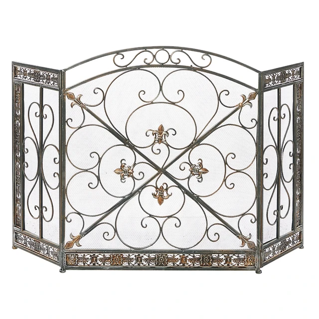 Black Metal Art Deco 3-Panel Fireplace Screen
