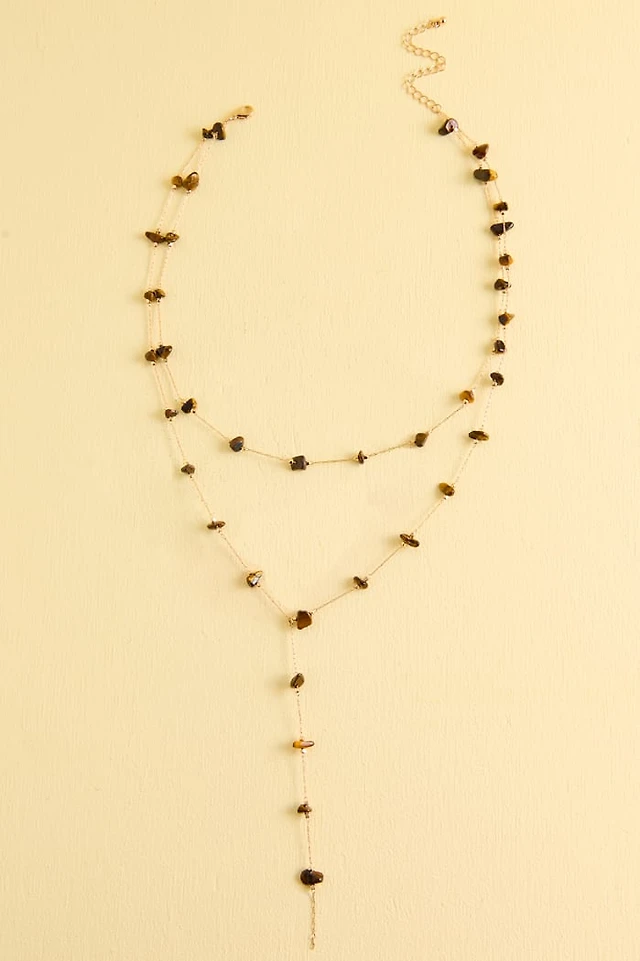 Tiger's Eye Dainty Stone Chip Lariat Necklace