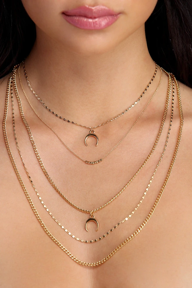 Half Moon Layered Chain Necklaces