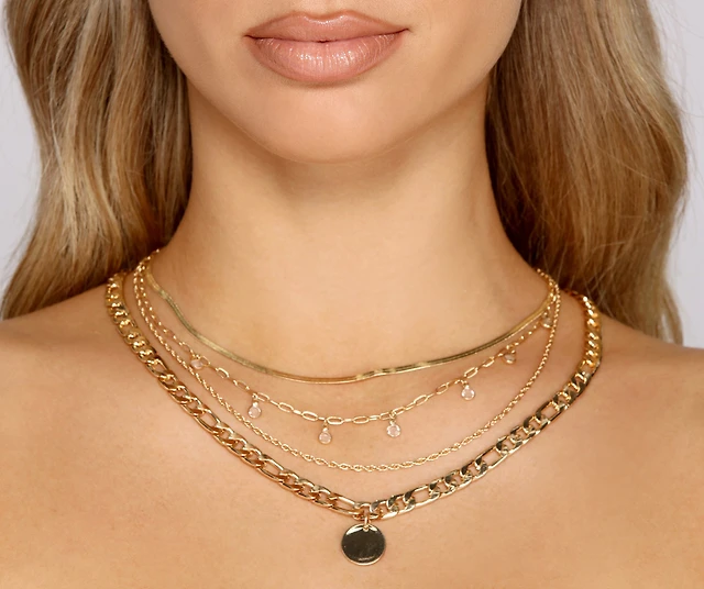 Waterproof Gold Plated Stainless Steel Cubic Zirconia Dainty Layered Necklace