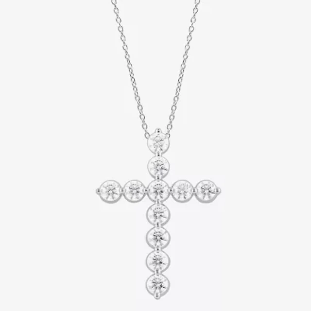 Cross (F/Si2) Womens 2 CT. T.W. Lab Grown White Diamond Sterling Silver Cross 18 Inch Pendant Necklace