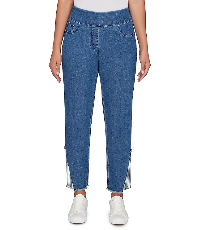 Ruby Rd. Plus Size Braid Outer Leg Straight Leg Ankle Pull-On Jeans