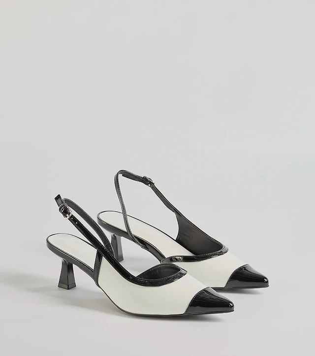 Pattern Play Houndstooth Sling-Back Kitten Heel Pumps