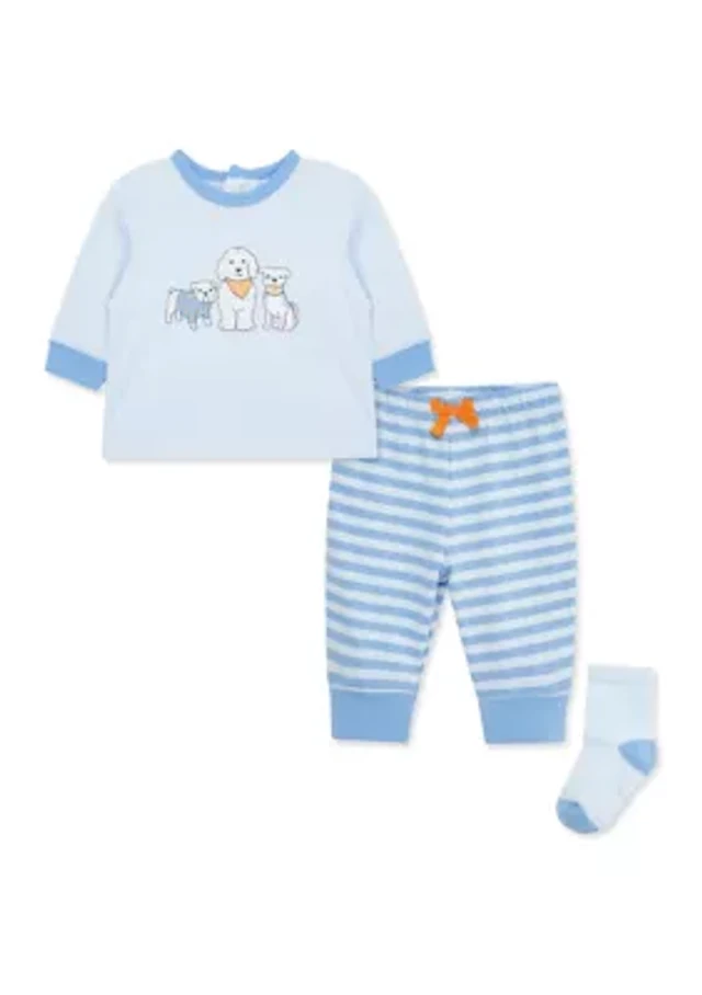 Baby Boys Puppy Bodysuit and Pants Set with Hat