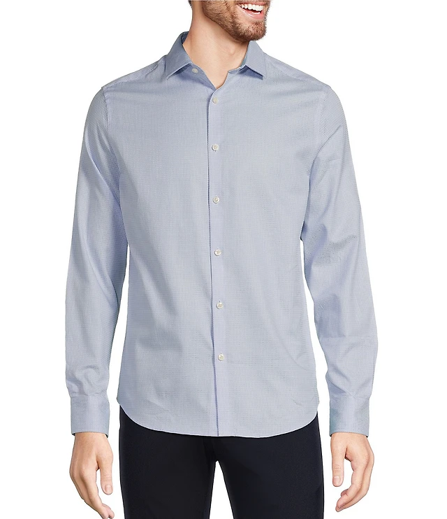 Hart Schaffner Marx State Street Essentials Albini 4FLEX Long Sleeves Mini Tile Spread Collar Coat Front Shirt