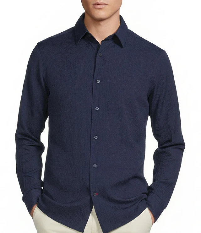 Murano Wardrobe Essentials Solid Dobby Stretch Long Sleeve Woven Shirt