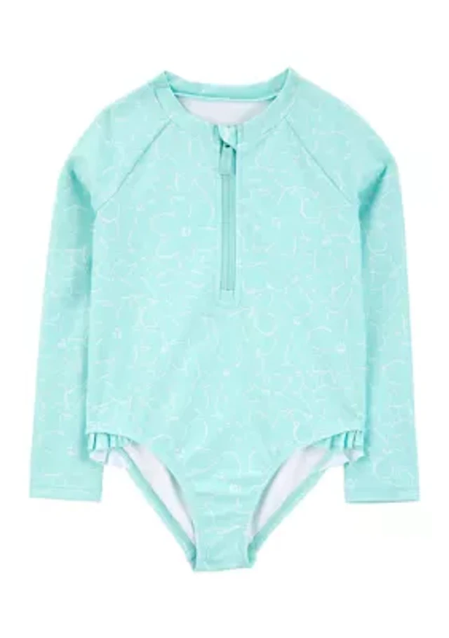 Long-Sleeve Rashguard One-Piece Swimsuit for Toddler Girls