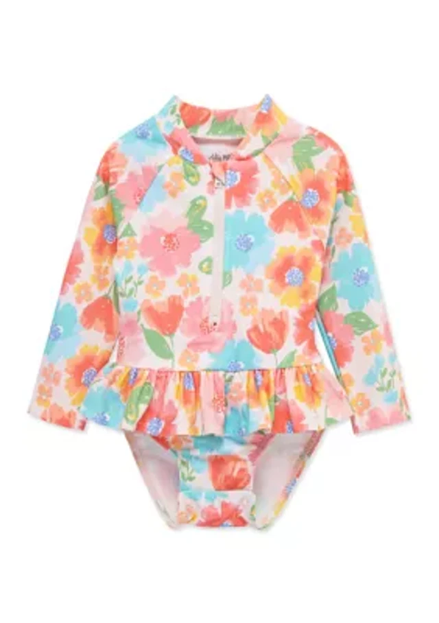 Baby Girl Recycled Rashguard Swimsuit in Bloom Lagoon