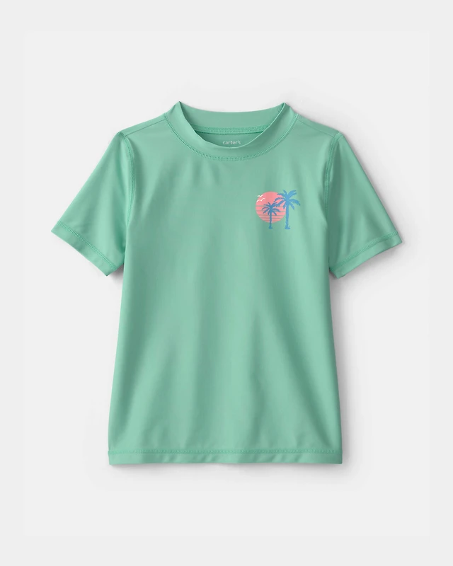 Boys Palm Tree Tropical Short-Sleeve Rashguard - Green